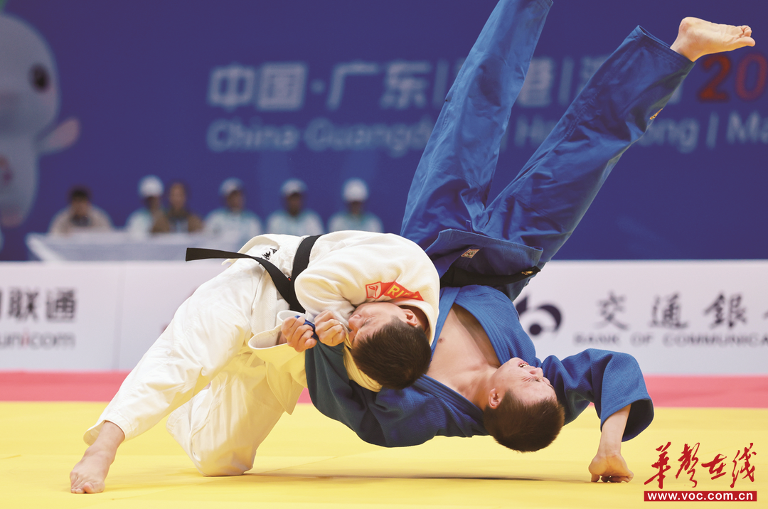 12月10日,在盲人柔道男子J1-81公斤級(jí)決賽中,29歲的周志偉(白)成功奪金。