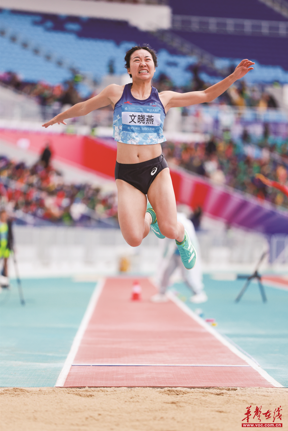 12月14日,在女子跳遠(yuǎn)T37級(jí)比賽中,文曉燕奮力一跳。最終,她獲得該項(xiàng)目金牌。