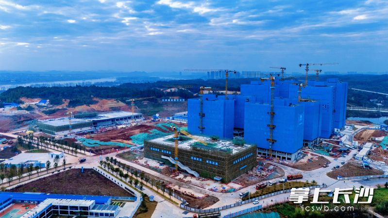 “目前,項目一標段宿舍組團的室內外精裝已經接近收尾,我們計劃在年前完成宿舍組團的裝修,及室外喬木施工,預計在2026年6月實現竣工。”中建五局三公司湖大科創港項目生產經理李志華介紹,包括圖書信息服務中心、前沿科學實驗中心、學生宿舍、操場等核心設施的一標段正在加緊建設中。